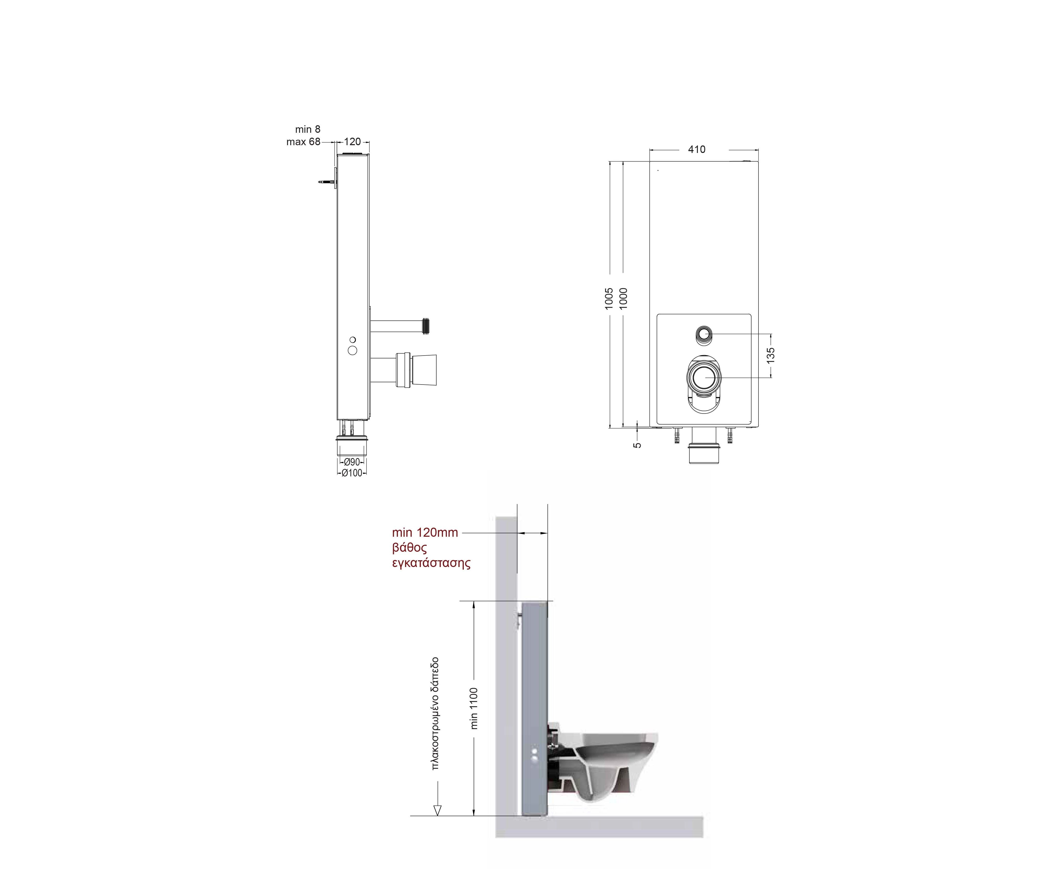Installation depth: minimum 100mm