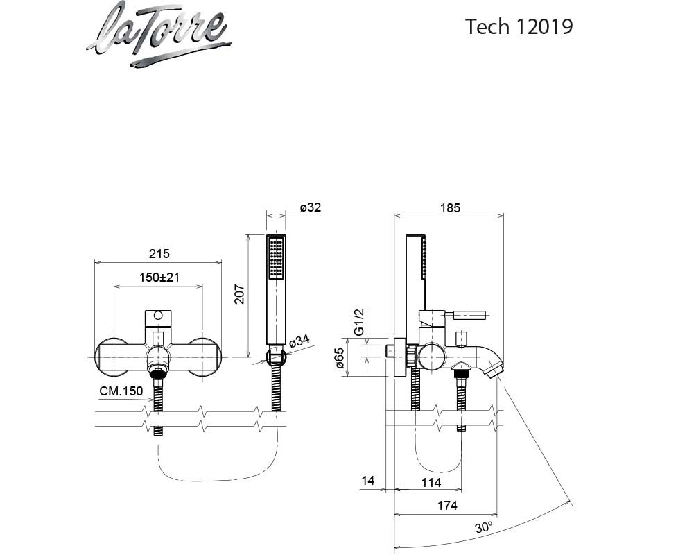 La Torre New Tech Αναμεικτική Μπαταρία Μπανιέρας Πλήρες Σετ Μαύρη